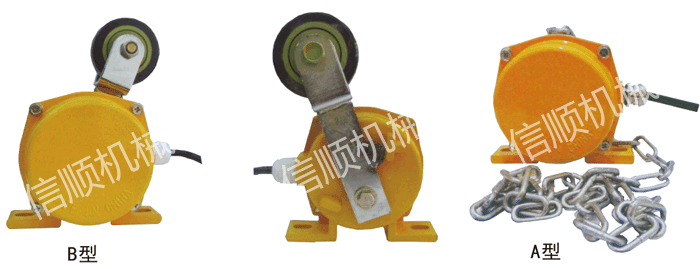 A型:采用門式支架安裝架,將檢測頭固定于橫梁上;鏈球高度可視現場情況確定;本裝置開關轉換角度為20,對有傾角的膠帶機可適當調整安裝角度;對于單臂式安裝可參照門式安裝方式;可選擇掃把式或鏈式。 B型:安裝在落料口25米處上行皮帶下表面;安裝在膠帶下而且下沉量最大的部位;滿載時,膠帶與觸輪保持接觸;定期清除積塵,保持觸輪活動靈活自如。